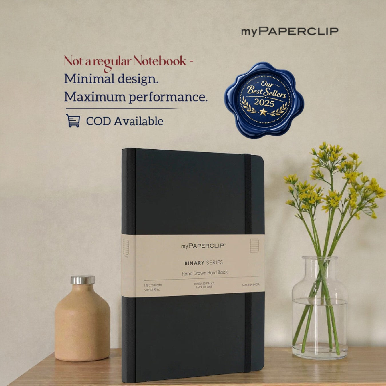 The book contains 192 pages of 80 GSM Natural Shade Paper with Hand Drawn Cover for flat opening. The cover is 1 mm thick superior quality board from Favini srl, Italy with four spine colour options - Black, Green, Orange, & Red.