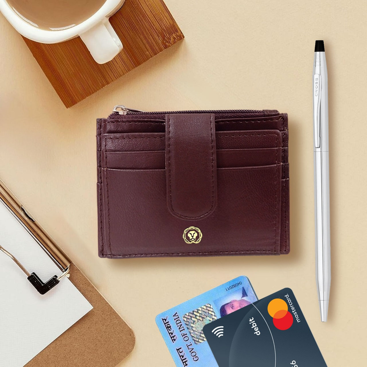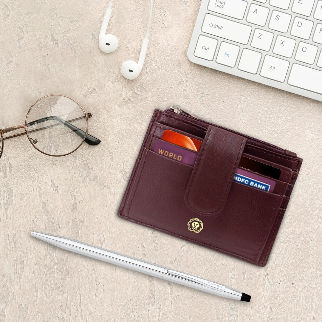 CROSS 3502 CENTURY LUSTROUS CHROME BALLPOINT PEN WITH BROWN CARD HOLDER | GIFT SET