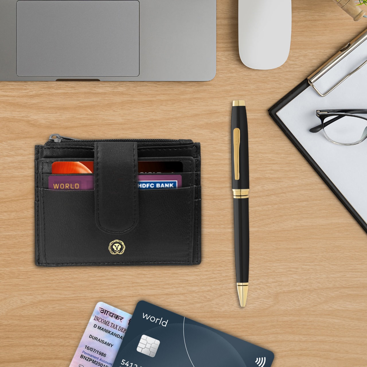 CROSS AT0662-11 COVENTRY LAQUE BLACK GOLD TRIM BALLPOINT PEN WITH CARD HOLDER | GIFT SET