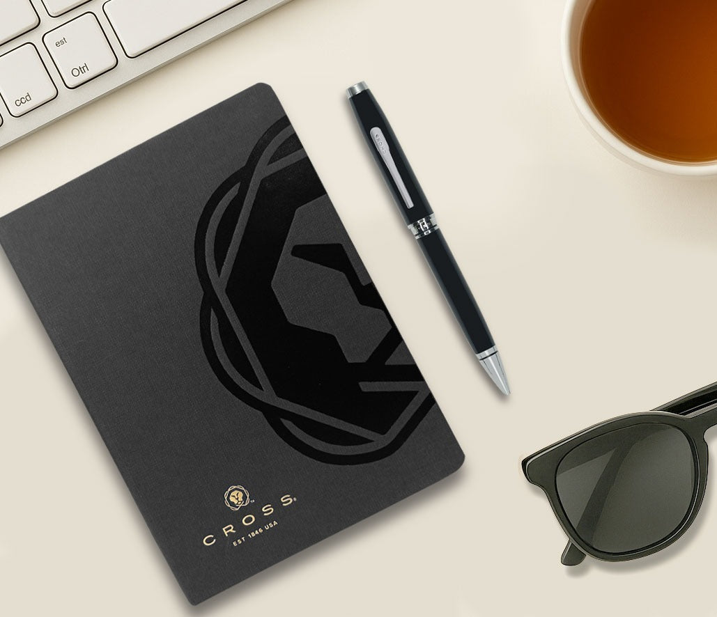 CROSS AT0662-6 COVENTRY LAQUE BLACK CHROME TRIM BALLPOINT PEN WITH BLACK NOTEBOOK | GIFT SET