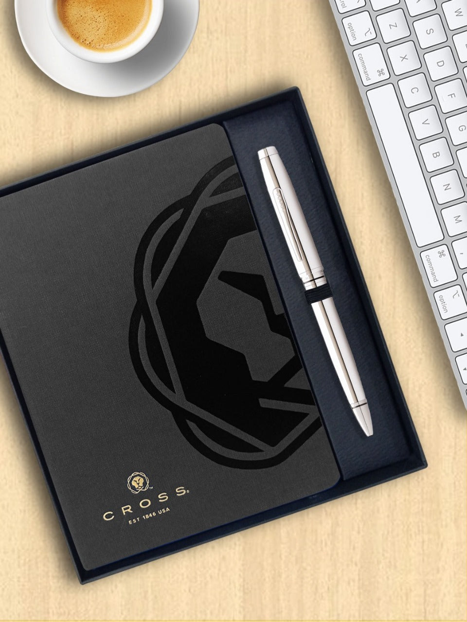 CROSS AT0662-7 COVENTRY POLISHED CHROME BALLPOINT PEN WITH BLACK NOTEBOOK | GIFT SET