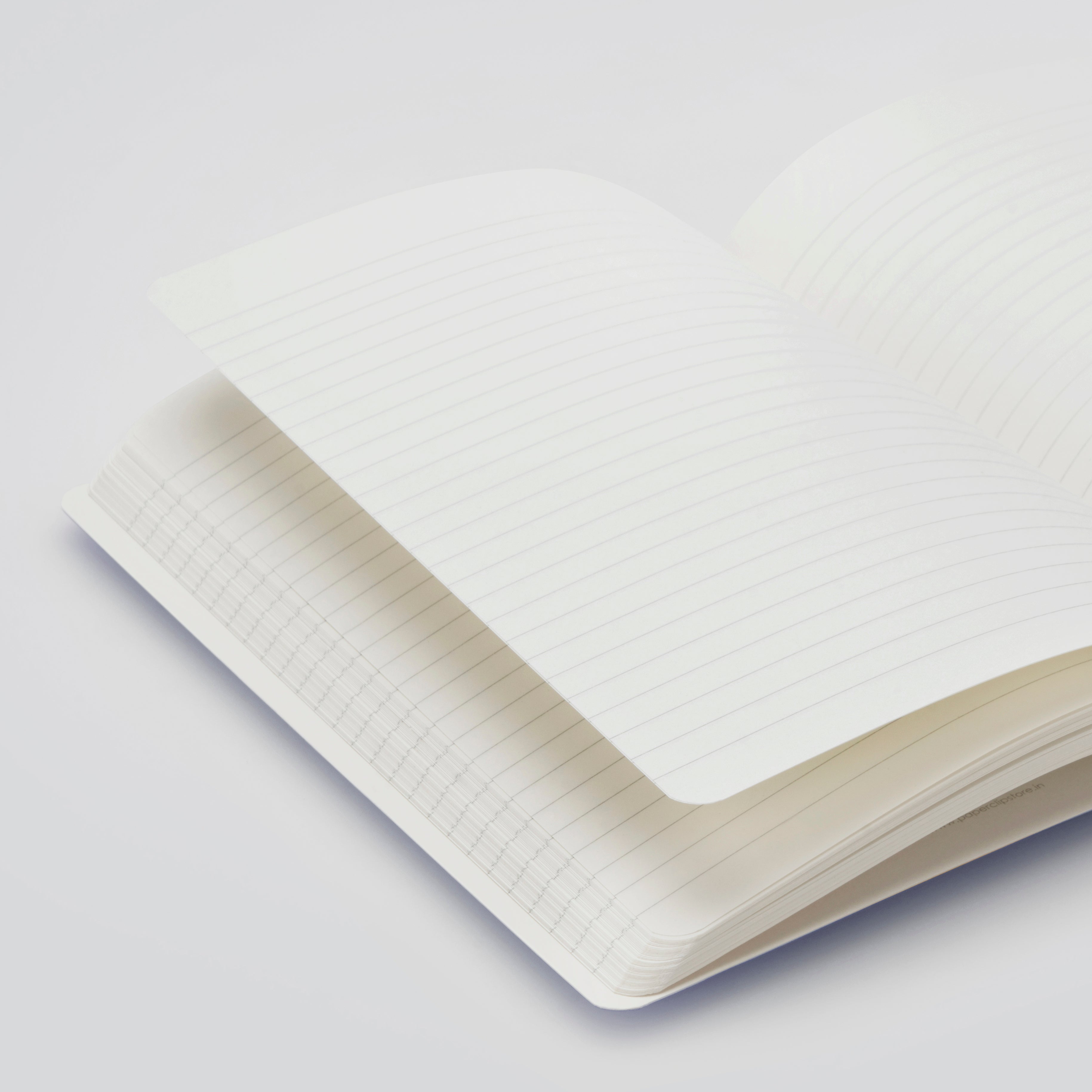The Soft Cover NoteBook has flexible yet sturdy cover. The book is section thread bound and has paper cover with rounded corners, an elastic closure and a bookmark.