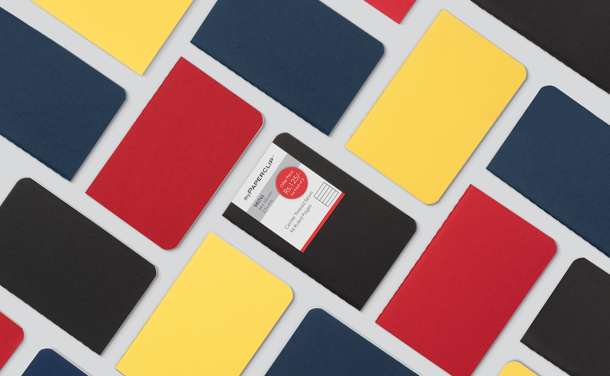 The MINI is made out of Natural Shade 68 GSM Paper and comes in four colour options. Cover stock is FSC Certified 285 GSM Dali felt mart uncoated from Gruppo Cordenons Spa, Italy. Each MINI is center thread sewn with back squared and rounded corners.
