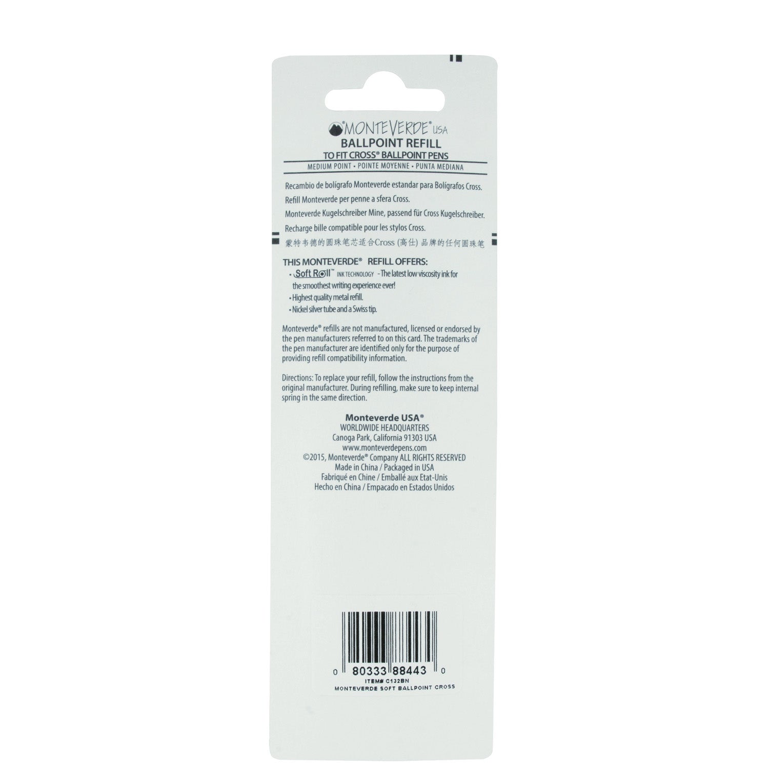 Monteverde Ball Pen Refill for Cross - Medium - Turquoise - Pack of 2