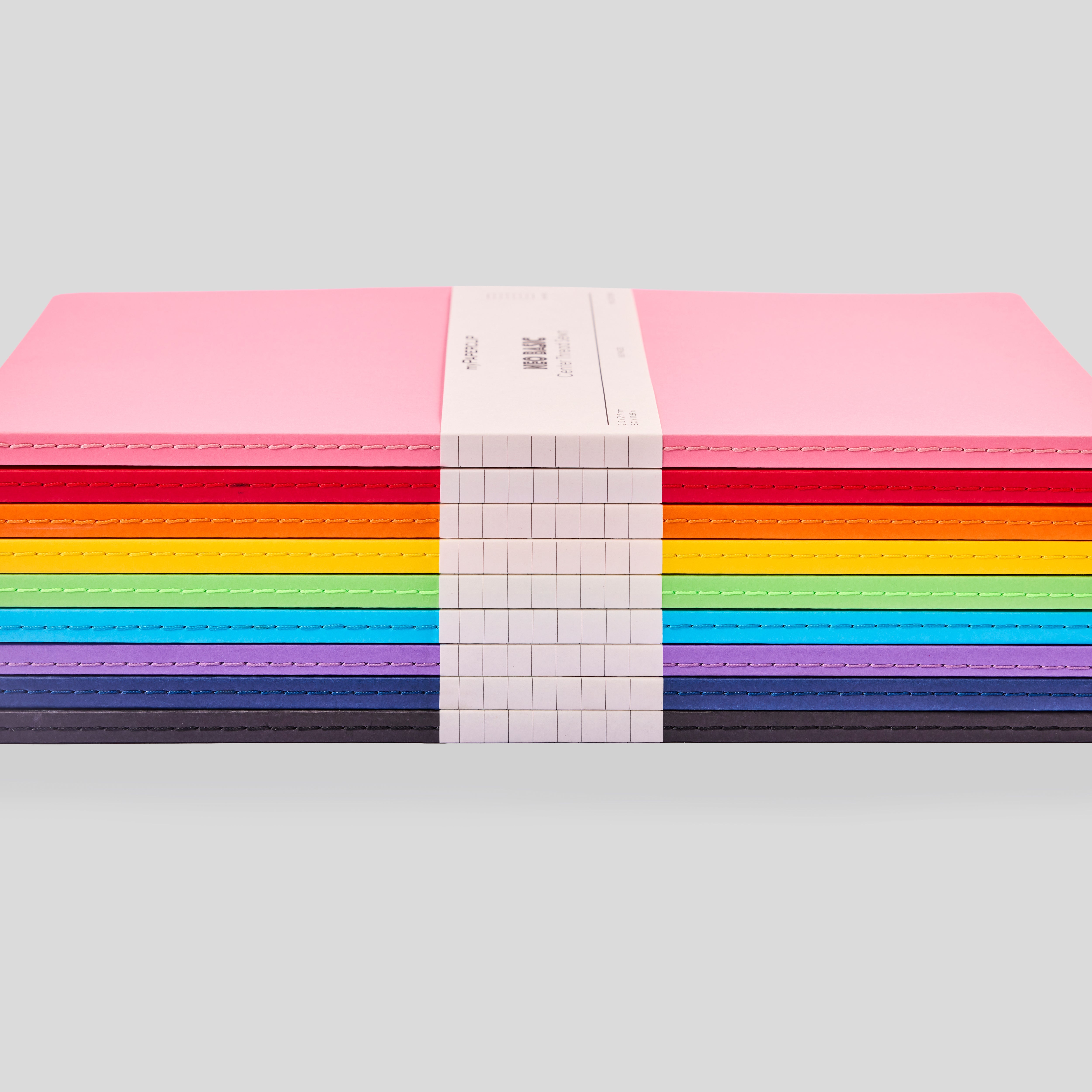 The Soft Cover NoteBook has flexible yet sturdy cover. The book is center thread sewn with back squared and rounded corners.