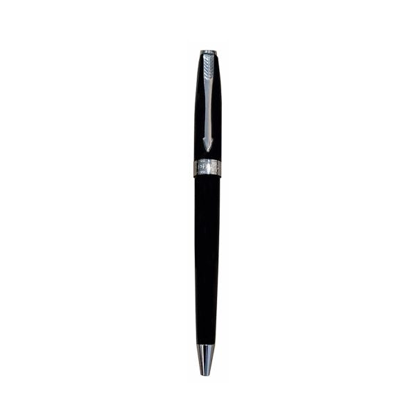 Parker Fusion Ball Pen with Lacque black ABS barrel with Stainless steel linished cap and chrome plated trim. A contemporary & unique design blended highlighted with a chrome plated ring on the barrel.