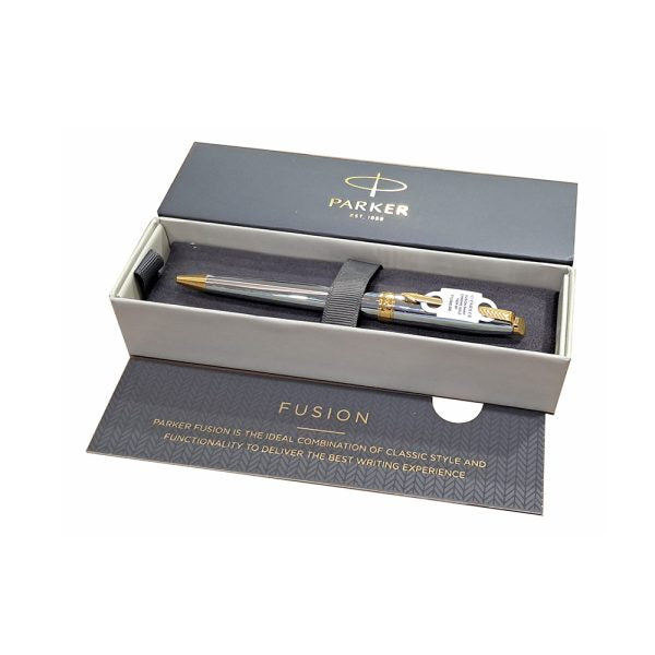 The Parker Fusion Shiny Chrome GT Ballpoint Pen is a blend of elegance and functionality. Its shiny chrome body and gold plated trim make it perfect for business and personal use, offering a premium writing experience. Ideal for those who value a sleek, modern design in their writing instruments.