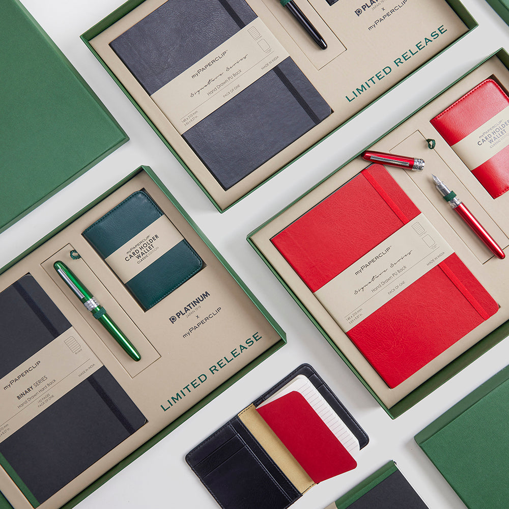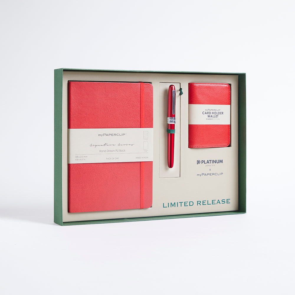 PLATINUM Japan and myPAPERCLIP have come together to create this exclusive combo set. This is a limited release comprising PLATINUM PLAISIR Fountain Pen, myPAPERCLIP notebook & Card Holder Wallet.