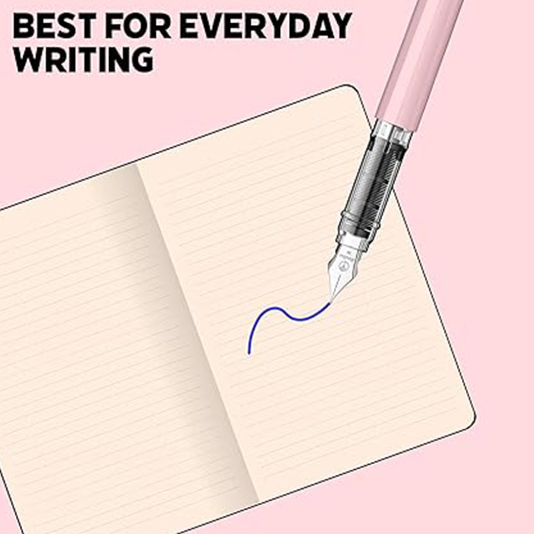 Scrikss Primeo Medium Nib Fountain Pen | 3 Cartridges Included | Stainless Steel Nib & ABS Body | Pink | in Blister Pack
