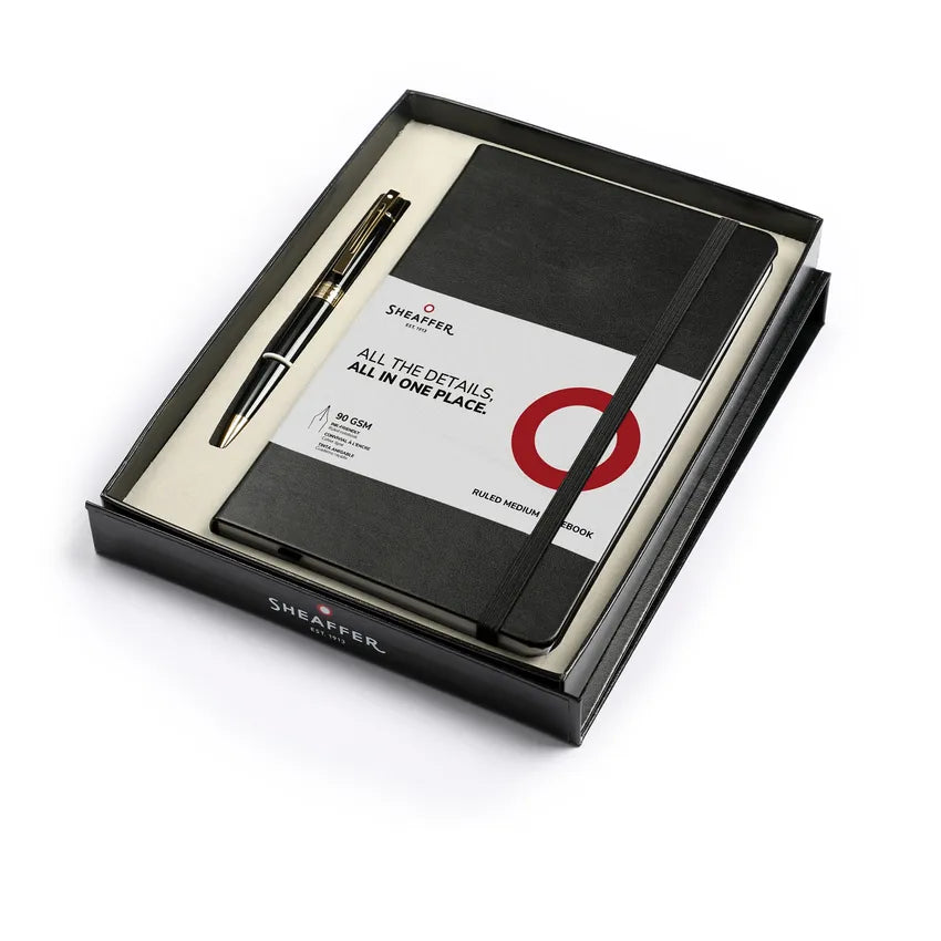 Sheaffer Gift Set 300 9325 Ballpoint Pen with Medium Notebook Glossy Black with Gold Trims