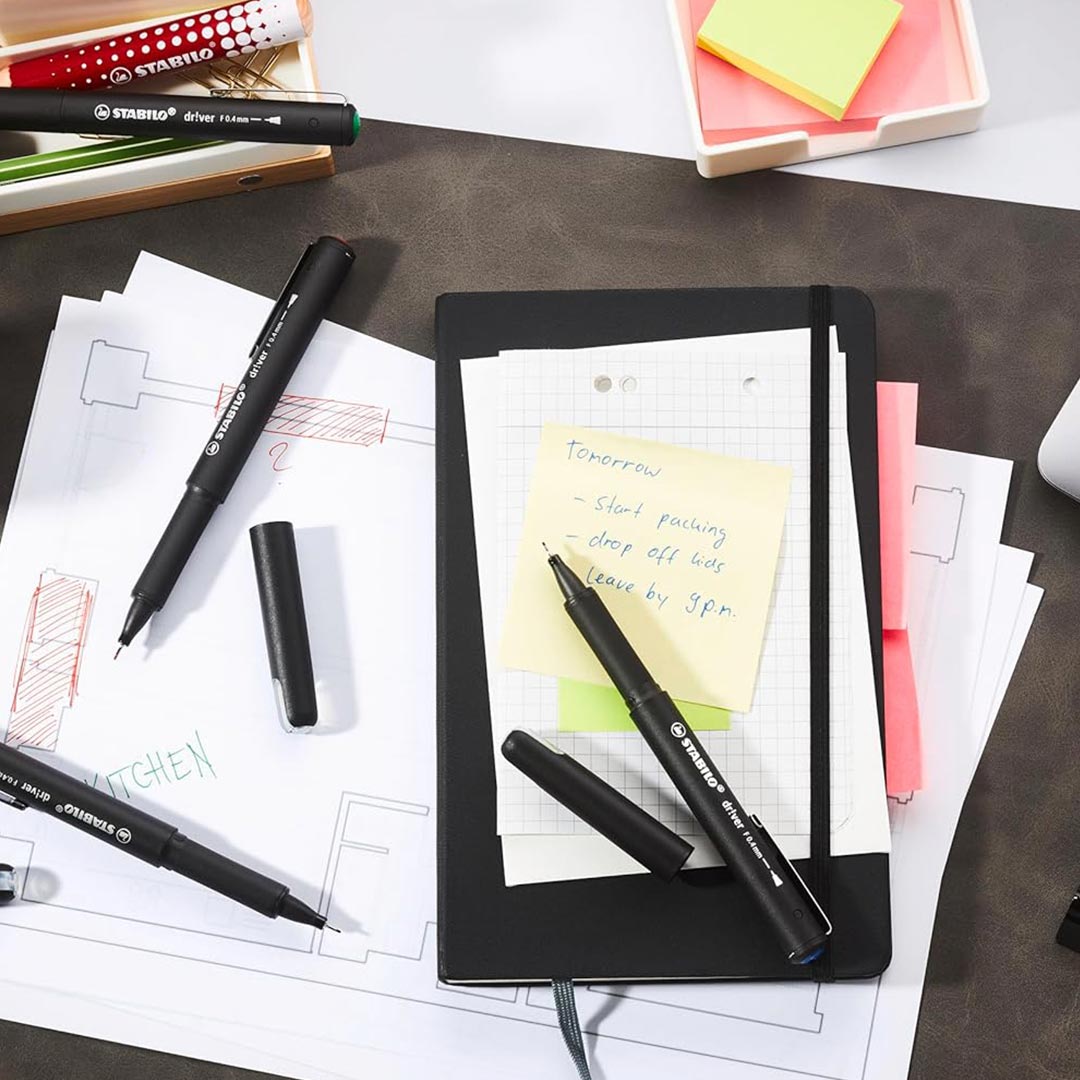 Stabilo | dr!ver Series | Premium Fineliner & Felt Tip | Pack of 4 | 0.4 MM | Black, Blue, Green, Red