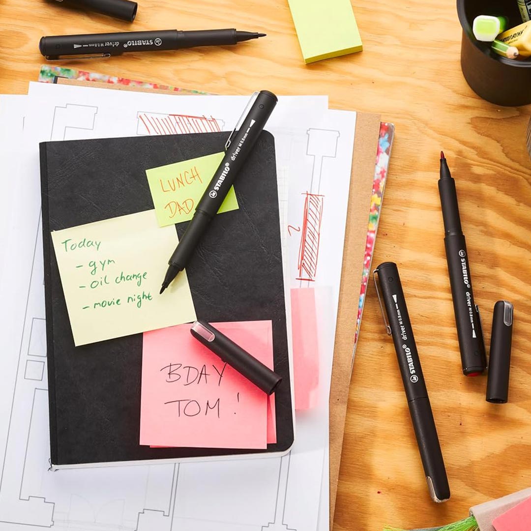Stabilo | dr!ver Series | Premium Fineliner & Felt Tip | Pack of 4 | 0.8 MM | Black, Blue, Green, Red